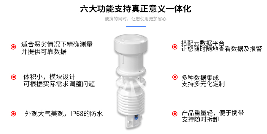 氣象站無活動部件,功耗小。它是一種集成度高、可靠性高、功耗低、體積輕、安裝速度快的小型氣象站,如果擴大土壤溫濕度測量,可以用于農業、林業等行業。南通科技綜合氣象氣象站已廣泛應用于各個*域。